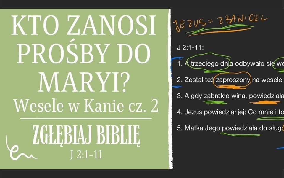 Omówienie fragmentu z Ewangelii Jana 2:1-11 – Wesele w Kanie Galilejskiej. Część 2/3. Film można obejrzeć na naszym kanale YouTube oraz poniżej.
